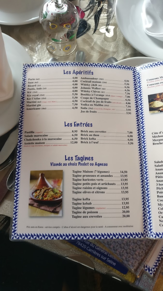 Nestled in the charming Carrières-sur-Seine, Atlas Moroccan Restaurant is a culinary gem that transports diners straight to the heart of Morocco. Located at 145 Rue du Général Leclerc, this inviting eatery offers an authentic taste of North African cuisine, showcasing vibrant flavors and rich spices that promise to delight your palate.